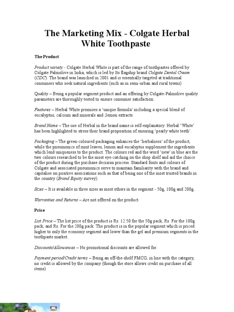 Marketing Mix On Colgate Palmolive Company Pdf Free Download